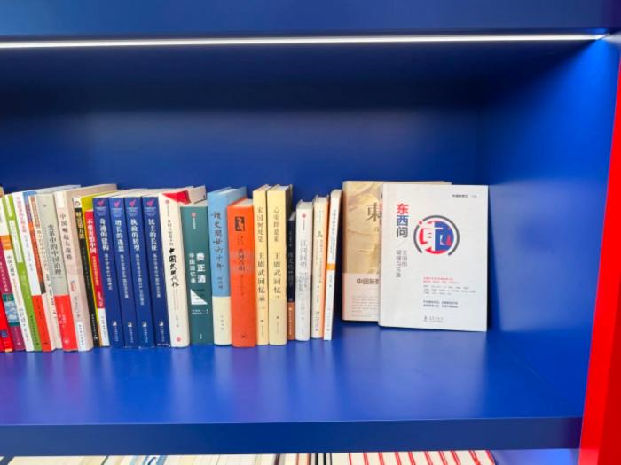 2025年10月14日,第二届世界中国学大会在上海举行,会场外陈列着多部中国学研究书籍,“东西问”系列书籍也在其中。中新社记者 韩禹 摄