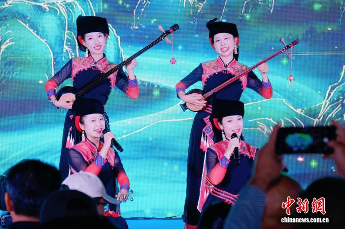 演员使用天琴演奏音乐,展示崇左民俗文化。主办方供图